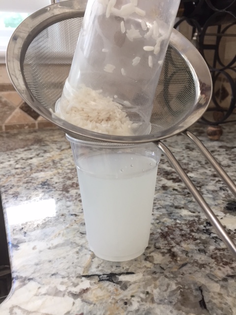 Her color was nice, too. OK, I was sold. Even sold faster when I found out how easy it was to make rice water. Place a small amount of rice – rice can be as little as a tumbler full – in a bowl and cover with water. Let this sit overnight.