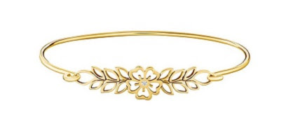 Hibiscus Flower ID Bangle Bracelet— sterling silver bangle features a hibiscus with a Swarovski Pure Brilliance Zirconia at its center, flanked by four sets of leaves; available in a bright silver finish or 14 karat yellow gold electroplating.