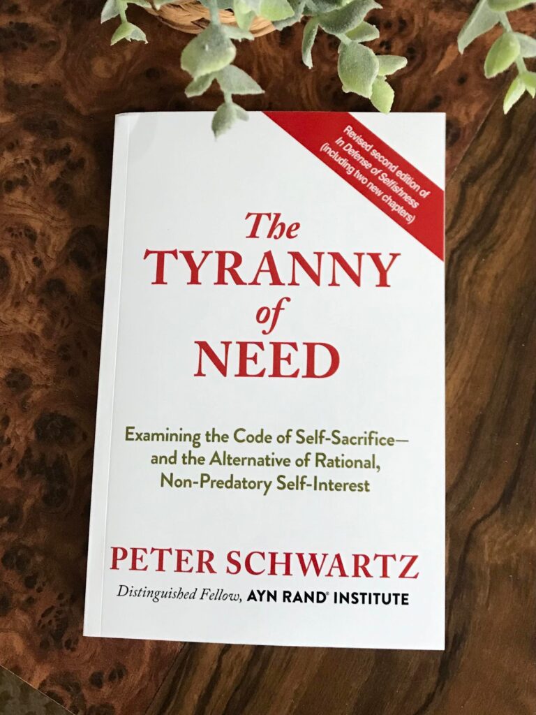 What if the reason behind the burgeoning swell of social conflict is not the absence of altruism, but rather, its overwhelming presence? Philosopher and retired Chairman of the Board of the Ayn Rand Institute Peter Schwartz masterfully challenges the widely held notion that self-sacrifice is a virtue and makes a compelling case for the pursuit of what he calls “rational self-interest” in his provocative book, The Tyranny of Need: Examining the Code of Self-Sacrifice—and the Alternative of Rational, Non-Predatory Self-Interest.