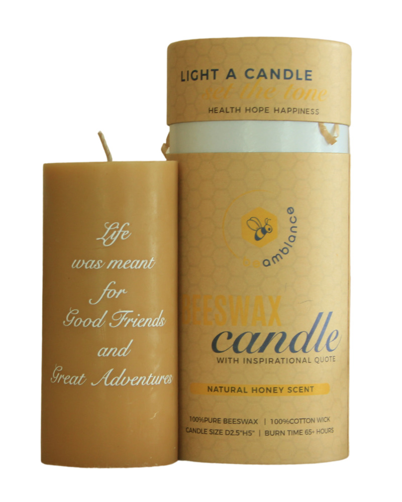 BeAMBIANCE CANDLE: Beeswax Candle With Inspirational Quote If you like burning candles and have been looking for candles that are natural, environmentally friendly, and non-toxic, and are tired of candles that emit smoke, make soot, and burn too quickly. Then search no more! BeAMBIANCE CANDLE: Beeswax Candle With Inspirational Quote has all you are looking for.