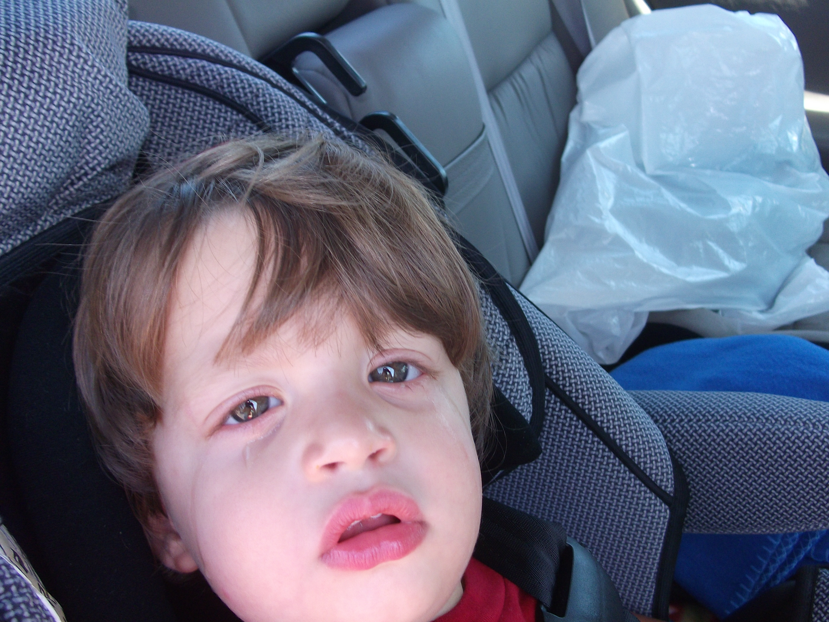 Here he is in the wagon of choice. I don’t know why he just would not look at me. Was he mad at me? What did I do to upset him? Christian, hello!