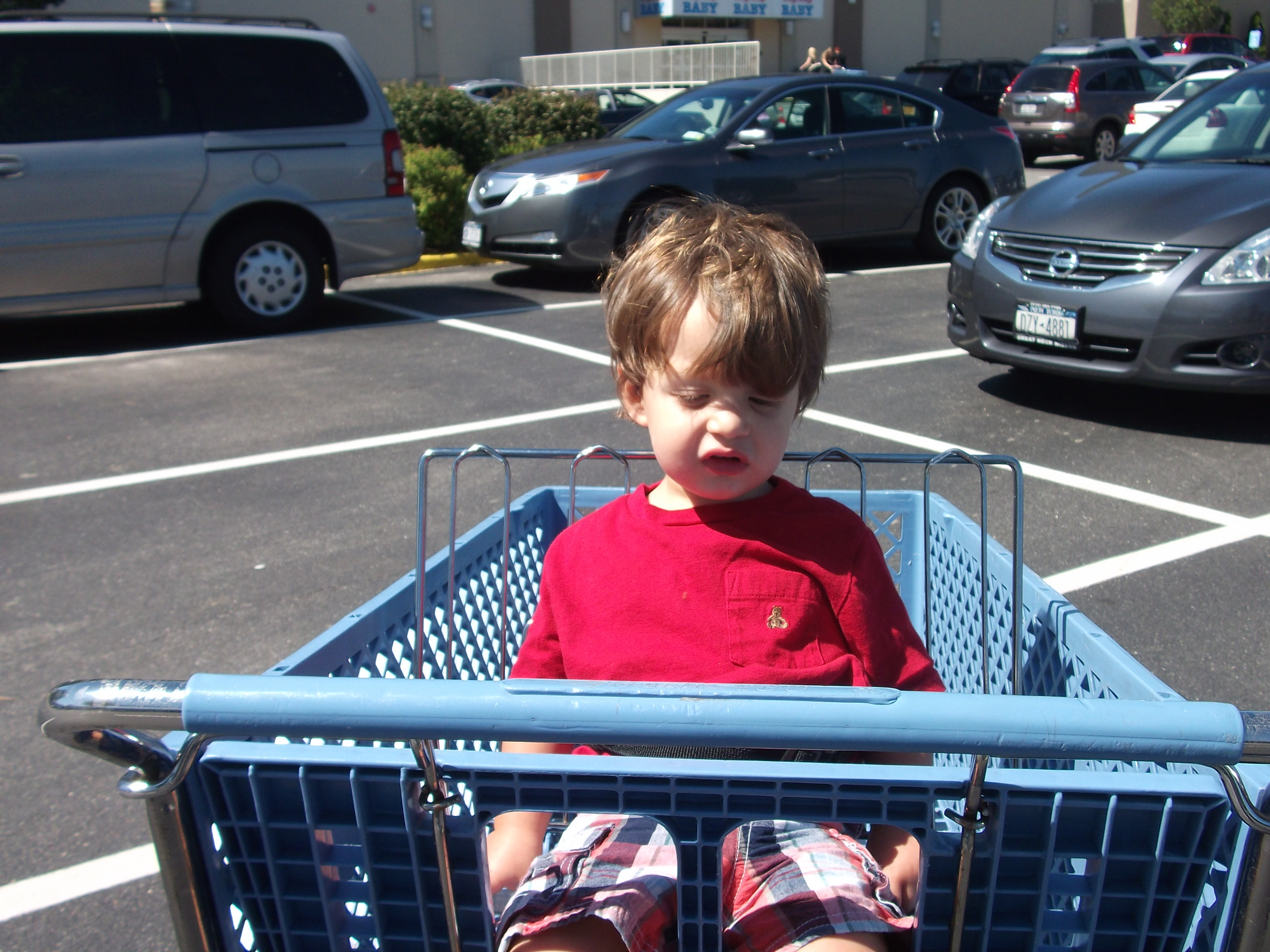 No response. I did not let his, ‘ I don’t want to know you’ look stop me. I pushed Mr. Chrisitian in the wagon and he was pretty quiet…UNTIL!