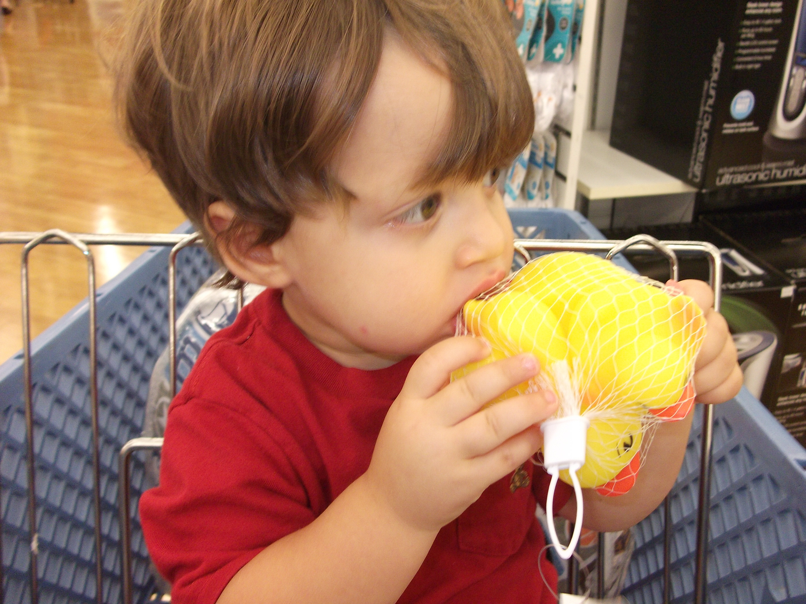 In the end he won.  I relented and just gave him the  plastic duck that he cried for.