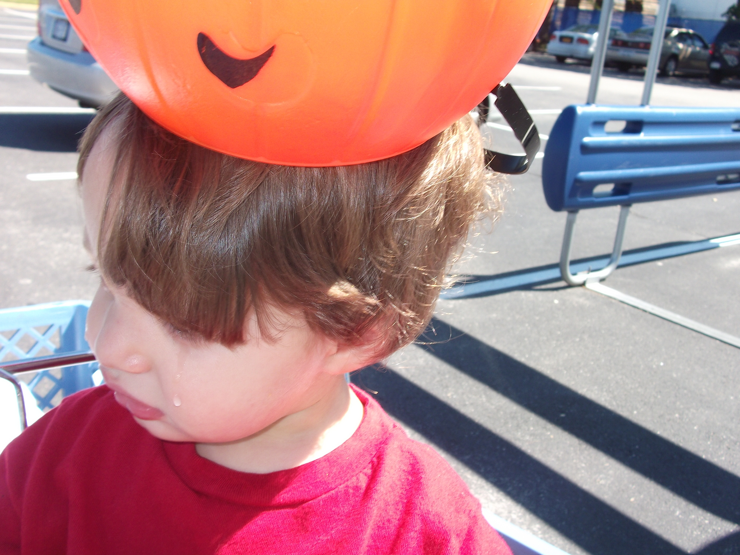 Then he said, “ball” and pointed to a Jack O’ Lantern. Oh, is this what you want. Correcting him was not important, I just wanted him to stop crying. So the Jack O’ Lantern was now his.